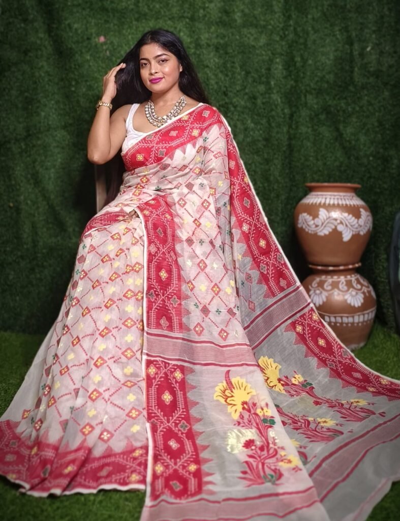 White Soft Dhakai Jamdani Saree