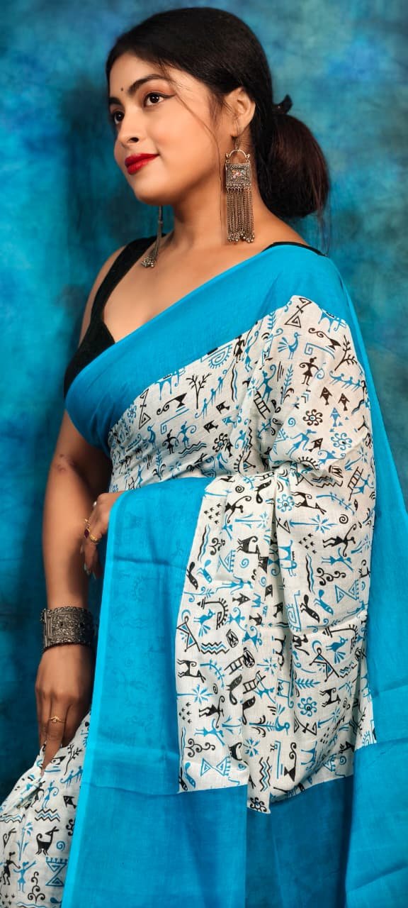 White Sky Blue Soft Madhu Moni Molmol Saree