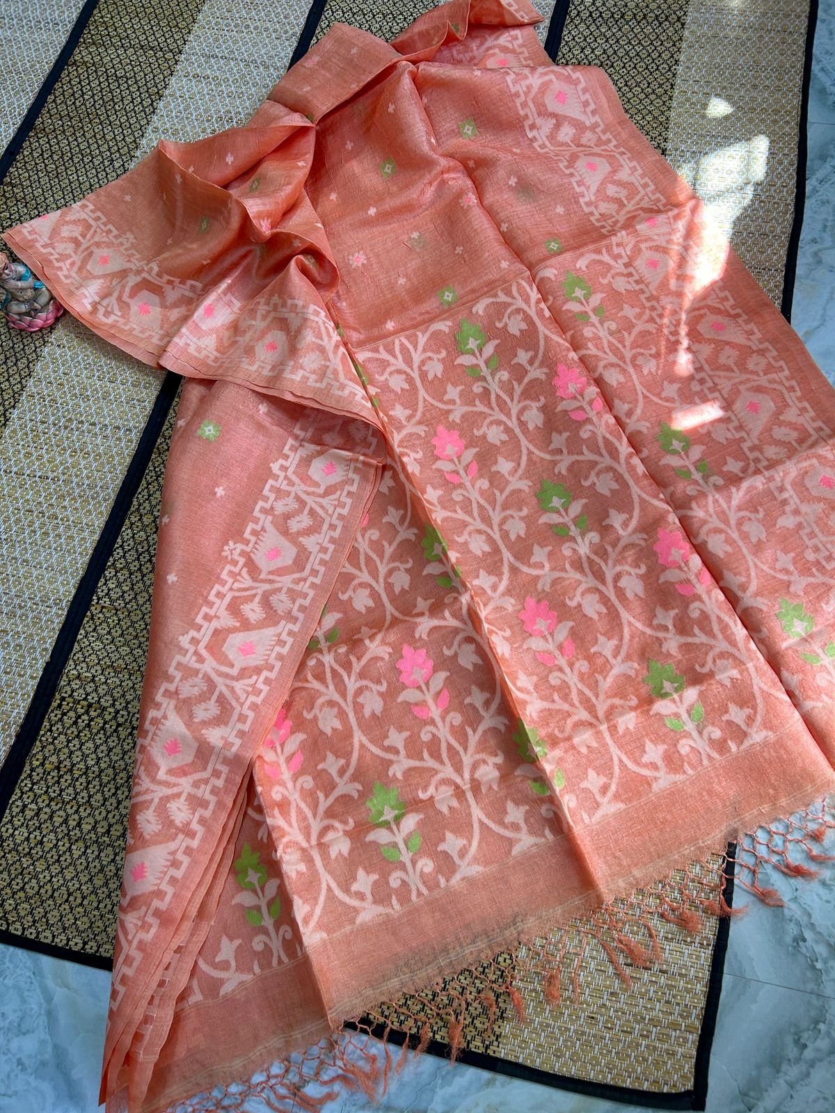 Falcon Pure Gachi Tussar Handloom Jamdani Saree