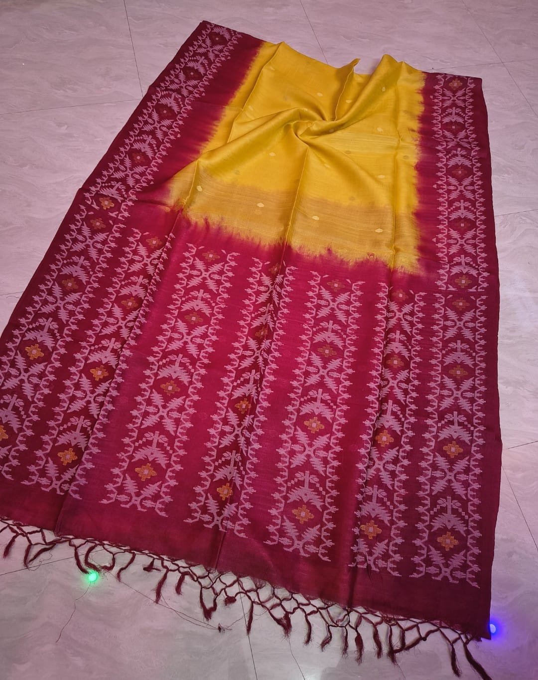 Lemon Ginger Pure Gachi Tussar Handloom Jamdani Saree