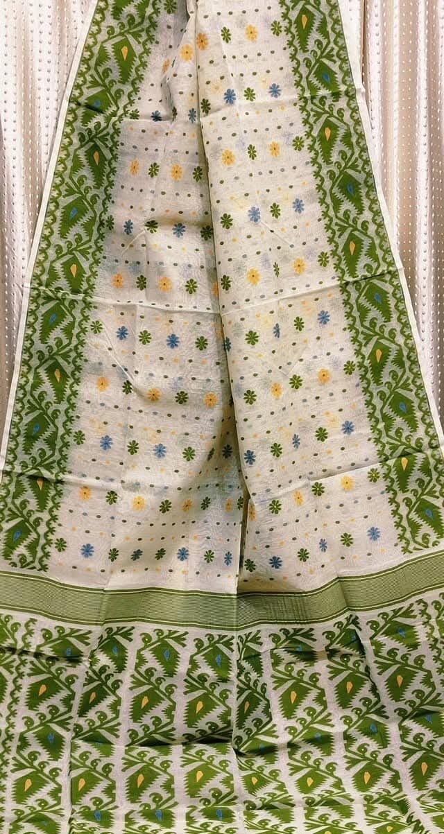White Soft Buti Korat Jamdani Saree With Blouse Piece