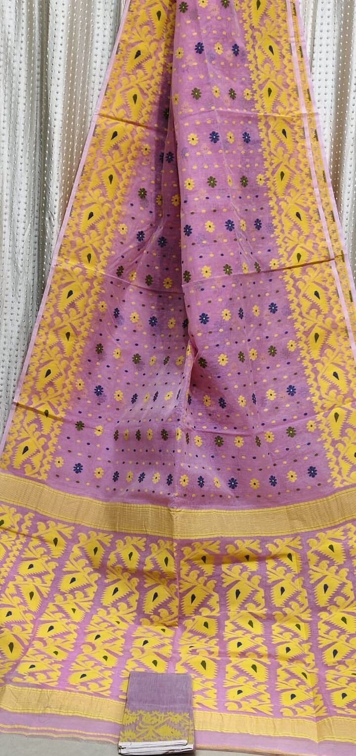 Lavender Pink Soft Buti Korat Jamdani Saree With Blouse Piece