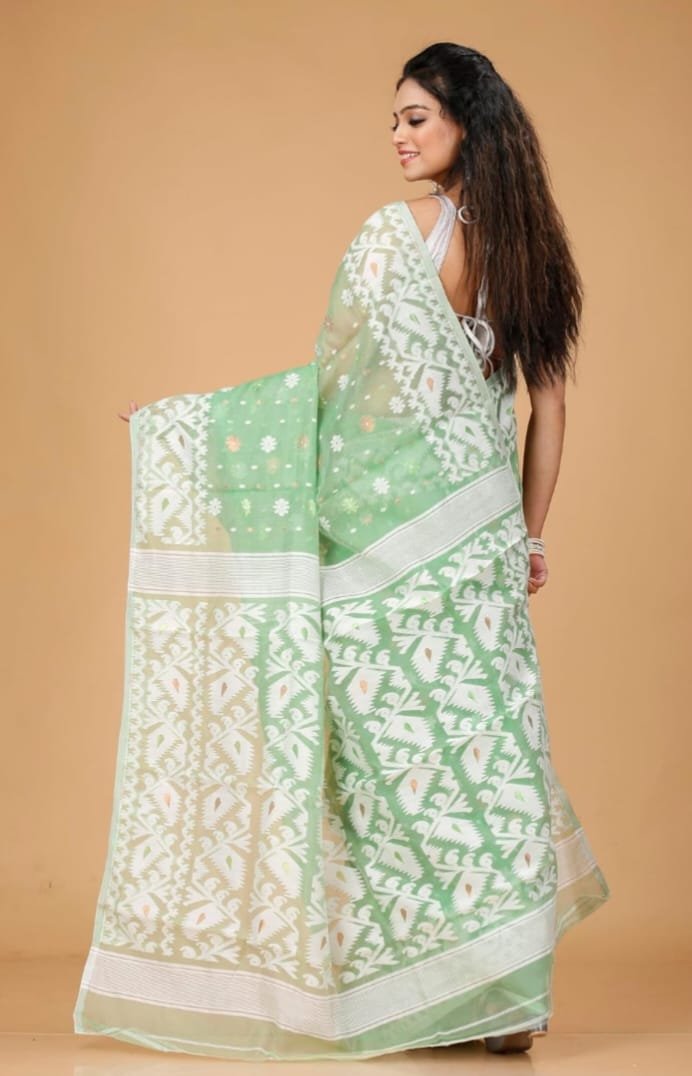 Dusty Green Soft Buti Korat Jamdani Saree With Blouse Piece