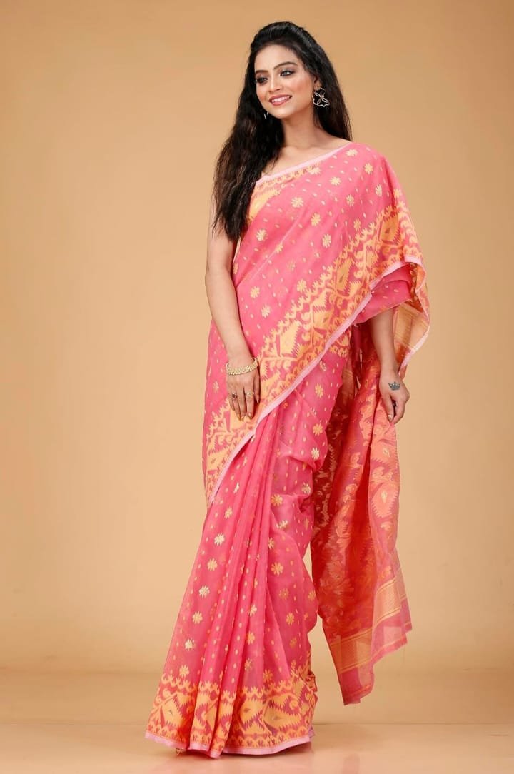 Faded Red Soft Buti Korat Jamdani Saree With Blouse Piece