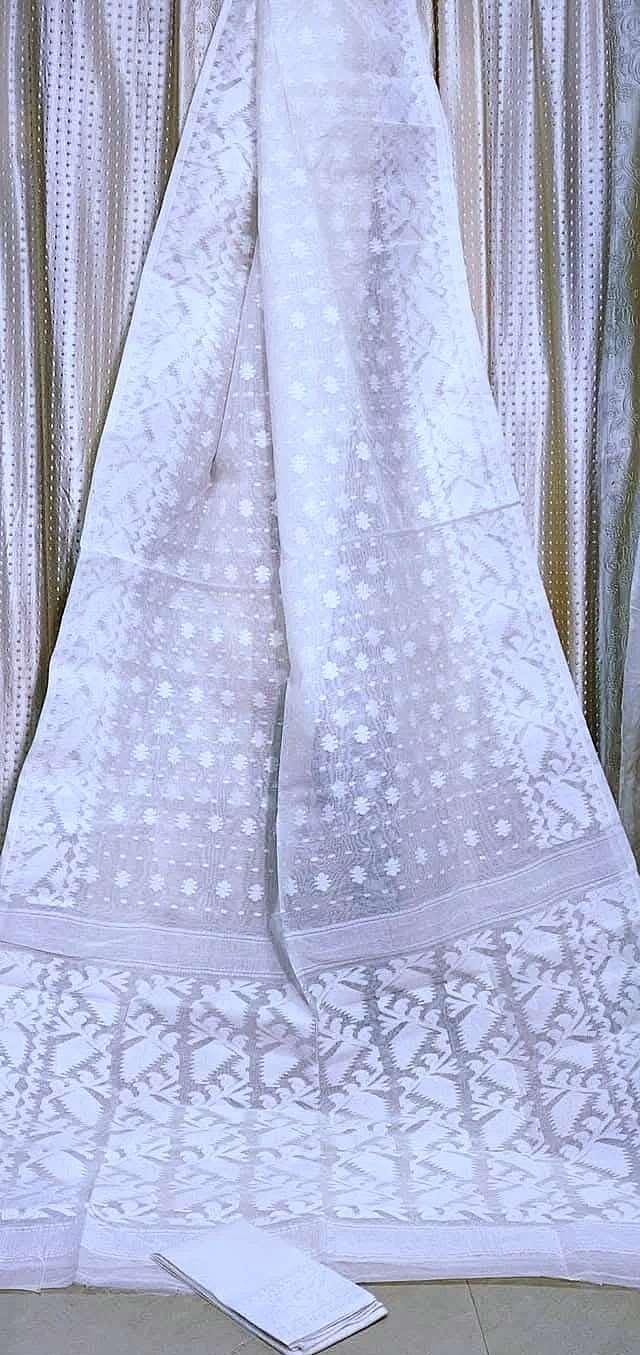 White Soft Buti Korat Jamdani Saree With Blouse Piece