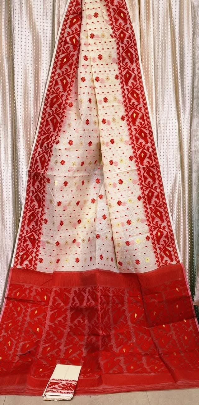 Red Soft Buti Korat Jamdani Saree With Blouse Piece