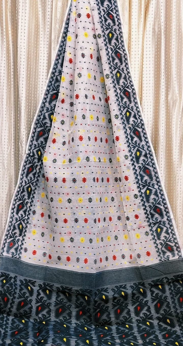 White Soft Buti Korat Jamdani Saree With Blouse Piece