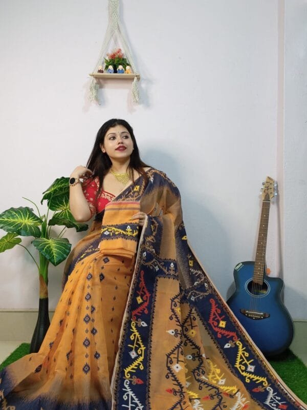Exclusive Brown Yellow Ikkot Soft Jamdani Saree