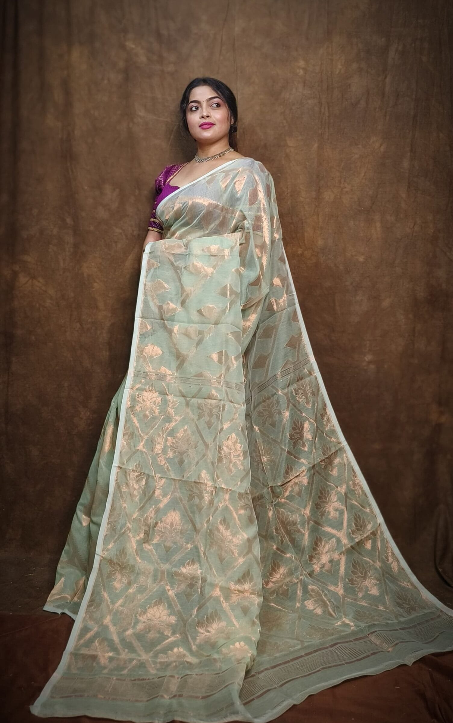 Sky Blue Soft Copper Joriwork Jamdani Sari