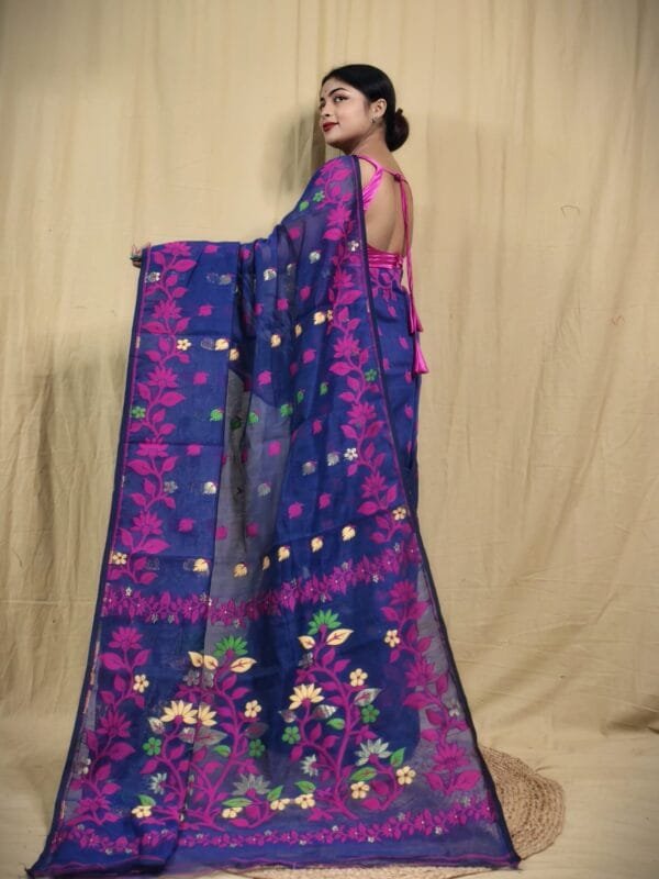 Blue Soft Lota Jamdani Sari
