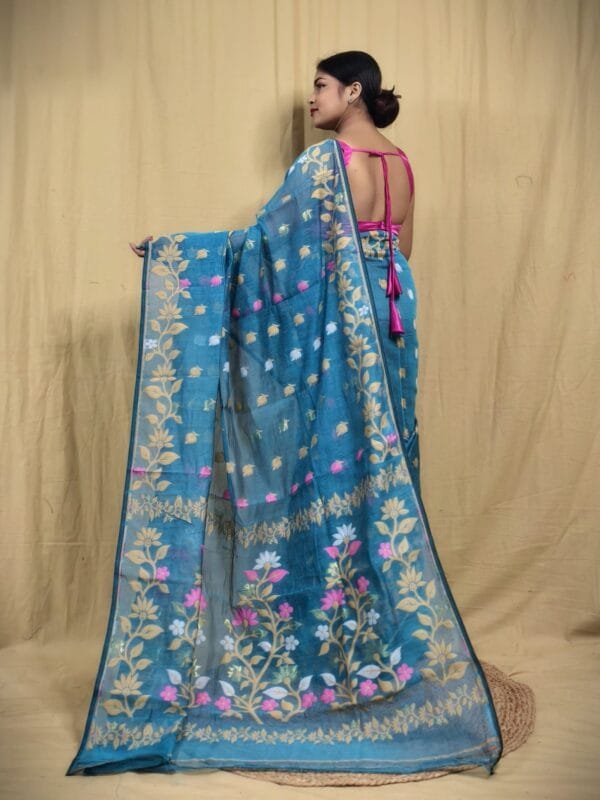 Teal Blue Soft Lota Jamdani Sari