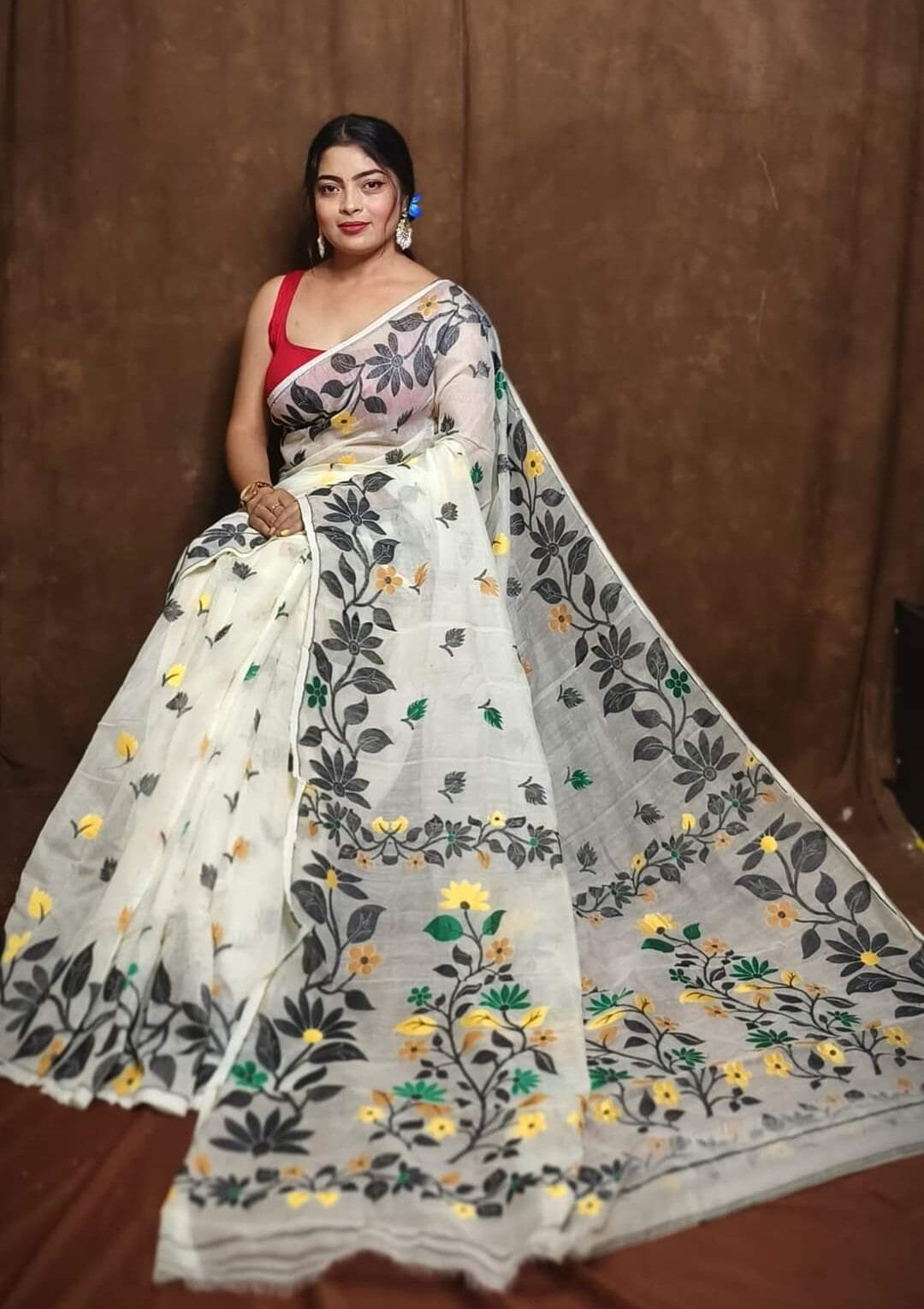 Loom crafted from soft blended cotton it’s perfect for special occasions or everyday wear. The length ensures graceful draping, and the intricate woven patterns add a touch of elegance. Whether you’re attending a wedding, festival, or want to make a statement, this saree is a delightful choice!