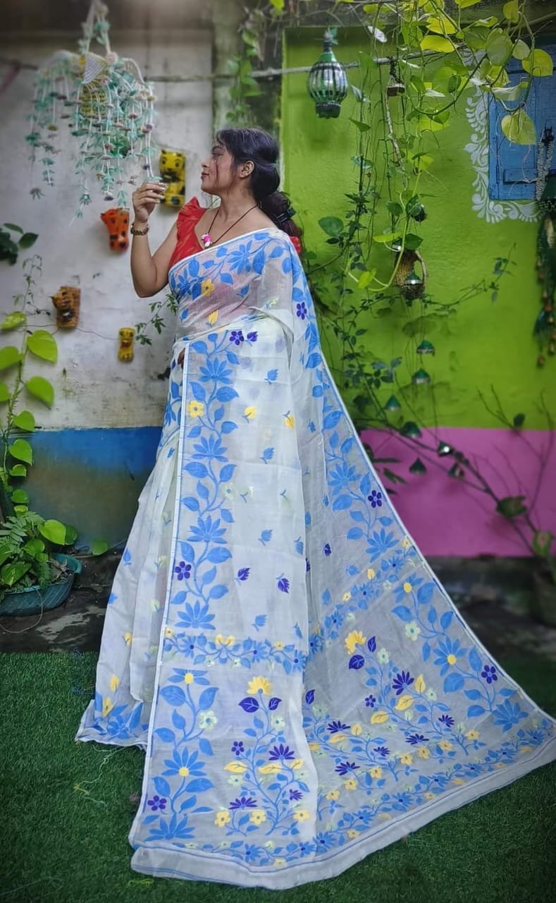 Loom crafted from soft blended cotton it’s perfect for special occasions or everyday wear. The length ensures graceful draping, and the intricate woven patterns add a touch of elegance. Whether you’re attending a wedding, festival, or want to make a statement, this saree is a delightful choice!