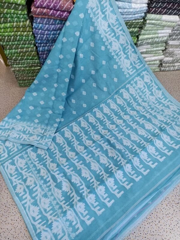 Exclusive Design Sky Blue Borfi Jamdani Saree
