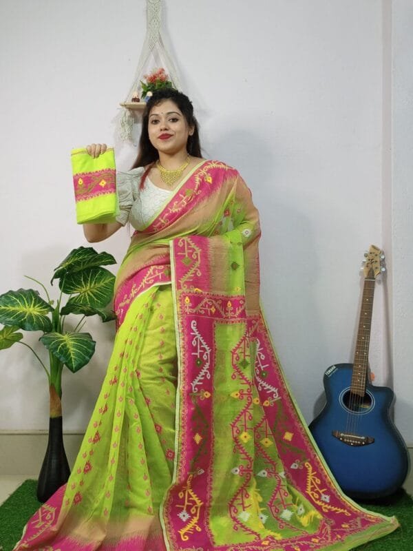 Exclusive Lime Green Ikkot Soft Jamdani Saree