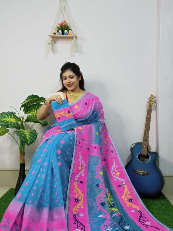 Exclusive Sky Pink Ikkot Soft Jamdani Saree