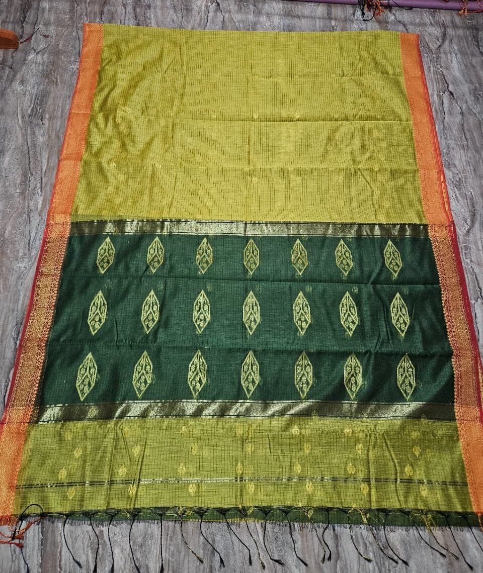 Loom crafted from soft cotton, silk, and zari it’s perfect for special occasions or everyday wear. The length ensures graceful draping, and the intricate woven patterns add a touch of elegance. Whether you’re attending a wedding, festival, or simply want to make a statement, this saree is a delightful choice!