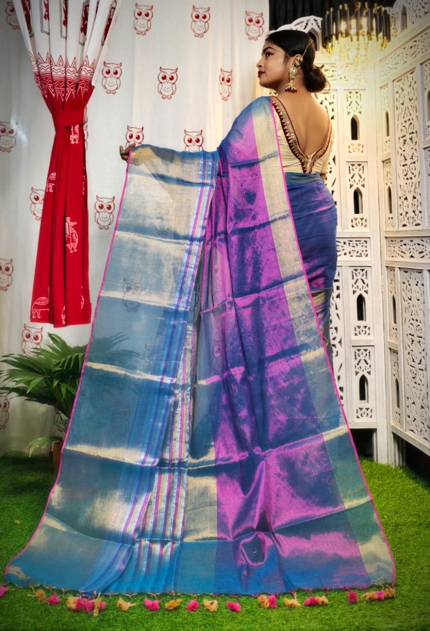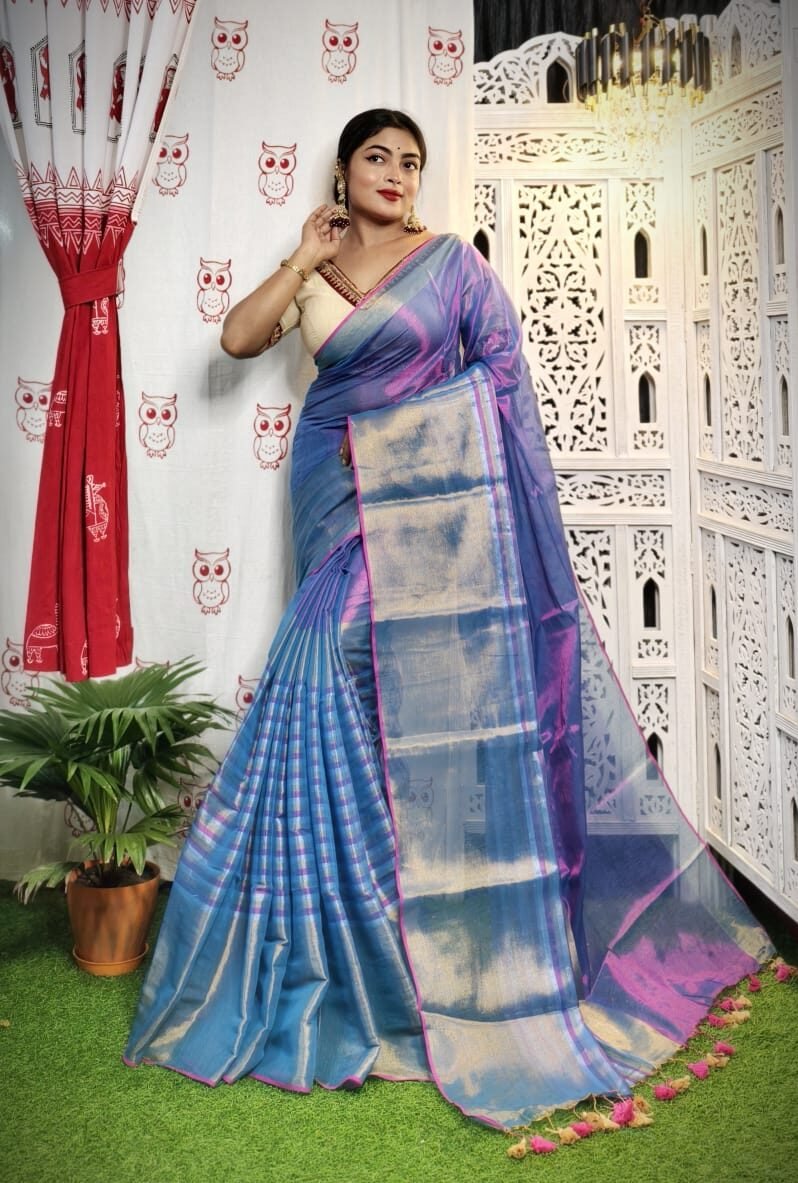 - Dry Clean Only: To maintain the integrity of the delicate fabric and intricate handloom work, it is recommended to dry clean this saree. Professional dry-cleaning will help preserve the colors and textures over time.