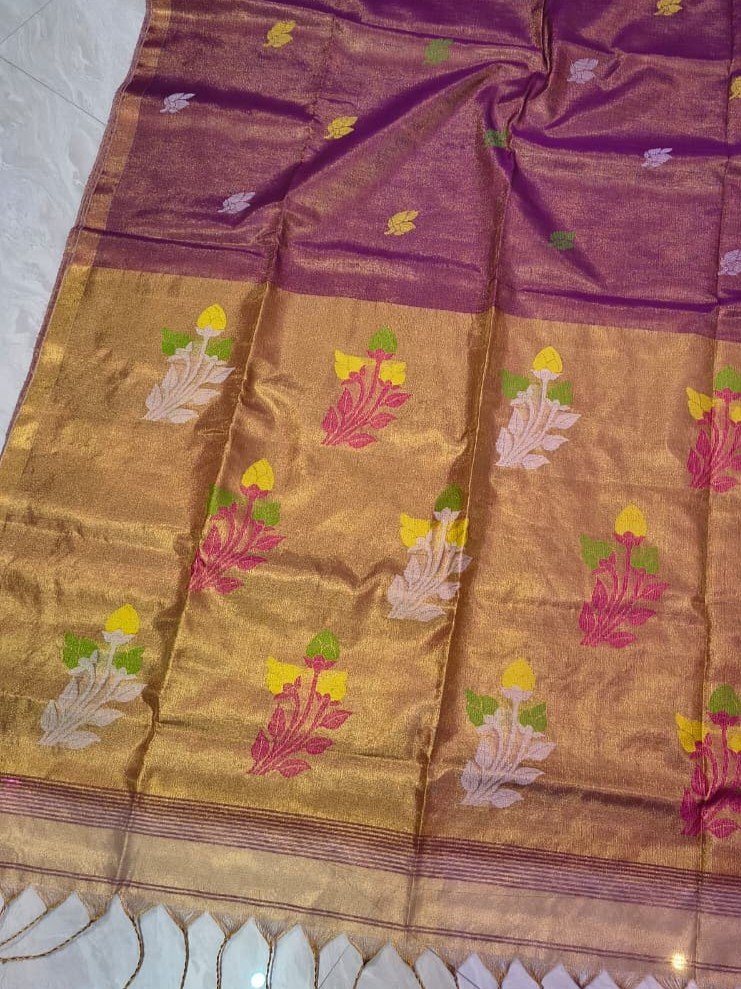 Exclusive Dual Tone Pata Tissue Sari With Blouse Piece Exclusive Dual Tone Pata Tissue Sari With Blouse Piece