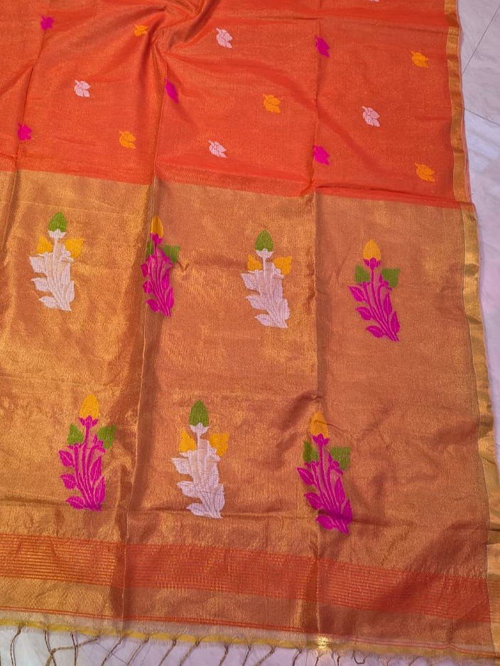 1. Dry Clean Only: To maintain the integrity of the delicate fabric and intricate handloom work, it is recommended to dry clean this saree. Professional dry-cleaning will help preserve the colors and textures over time.