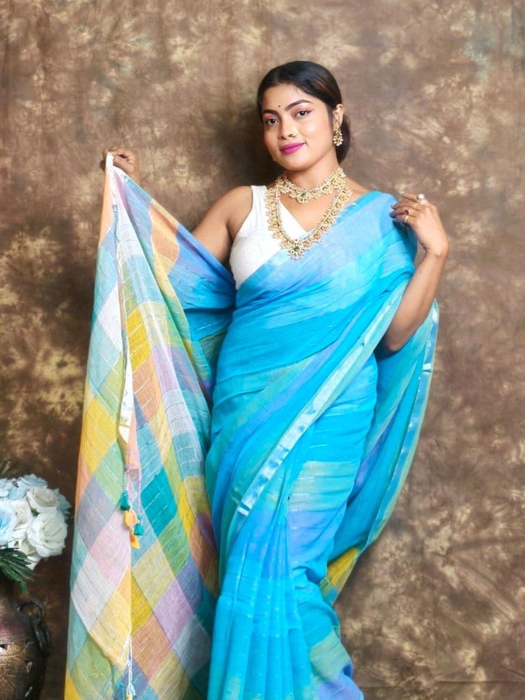Exclusive Dual Tone Plain Jori Tissue Sari With Blouse Piece Exclusive Dual Tone Plain Jori Tissue Sari With Blouse Piece