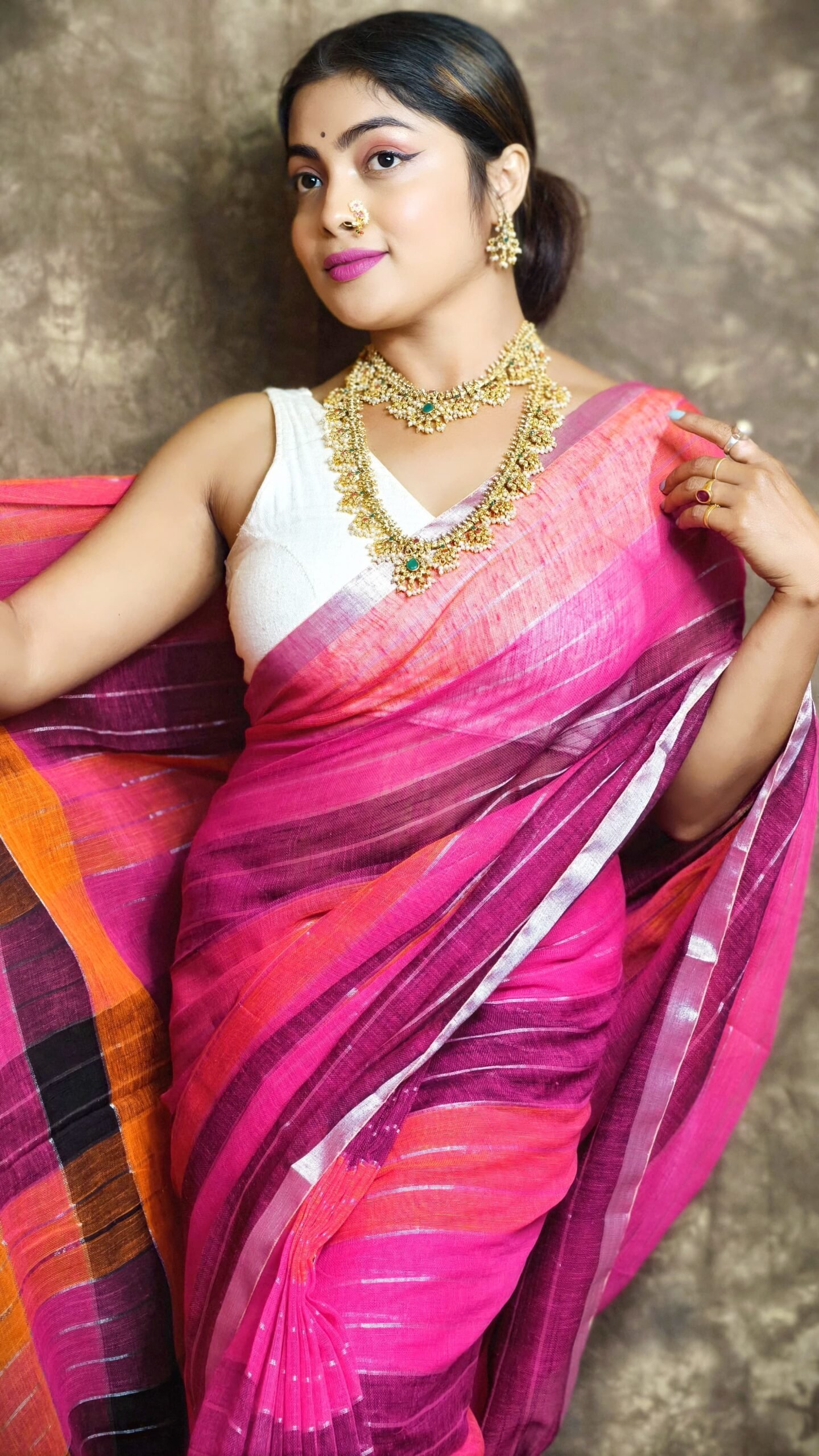 7. Handle with Caution: While wearing the saree, handle it with care to avoid snagging or tearing the delicate fabric. Avoid contact with rough surfaces or sharp objects that may cause damage.