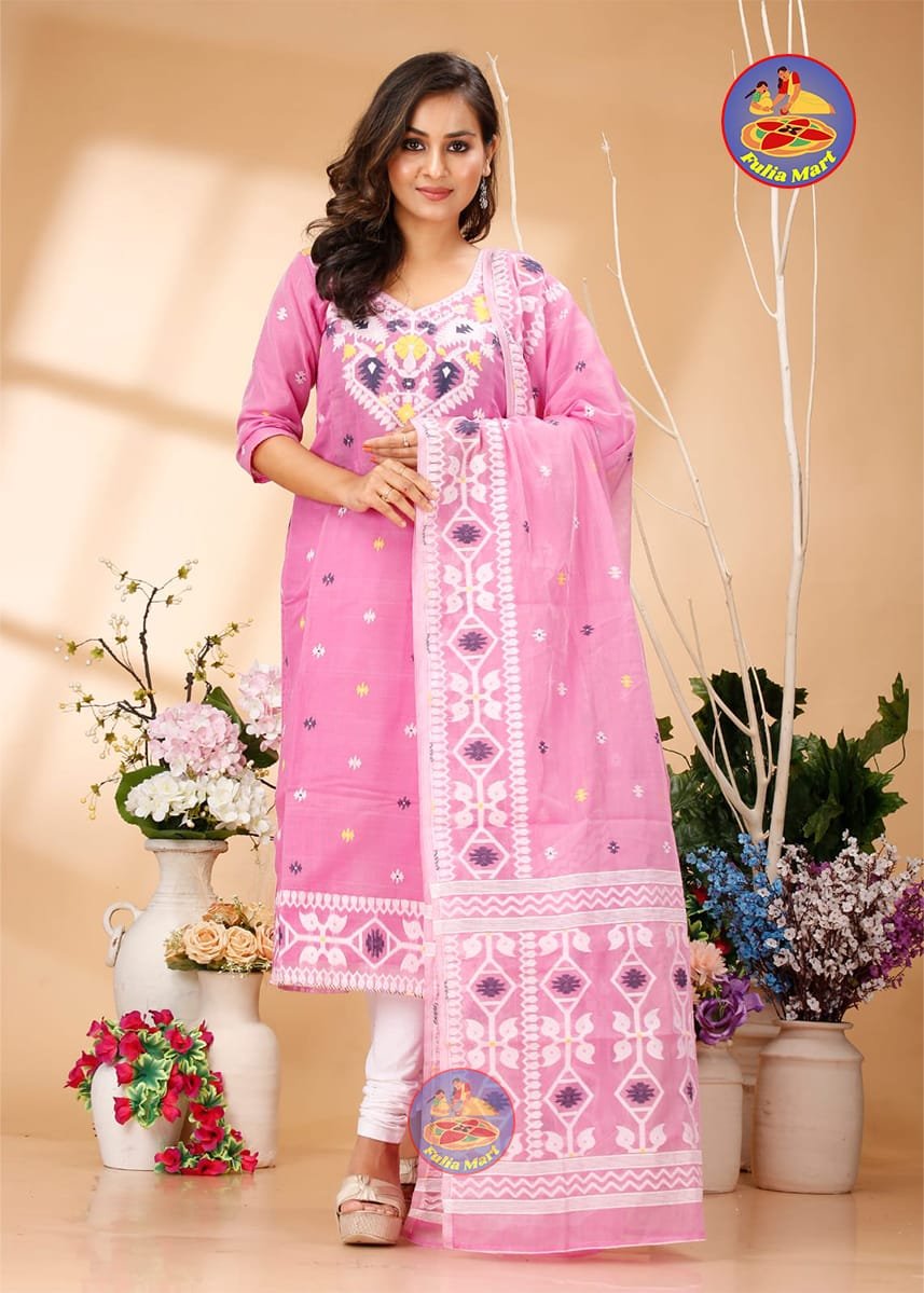Four Leaf Pink Sherbet Unstitched Jamdani Kurti Set