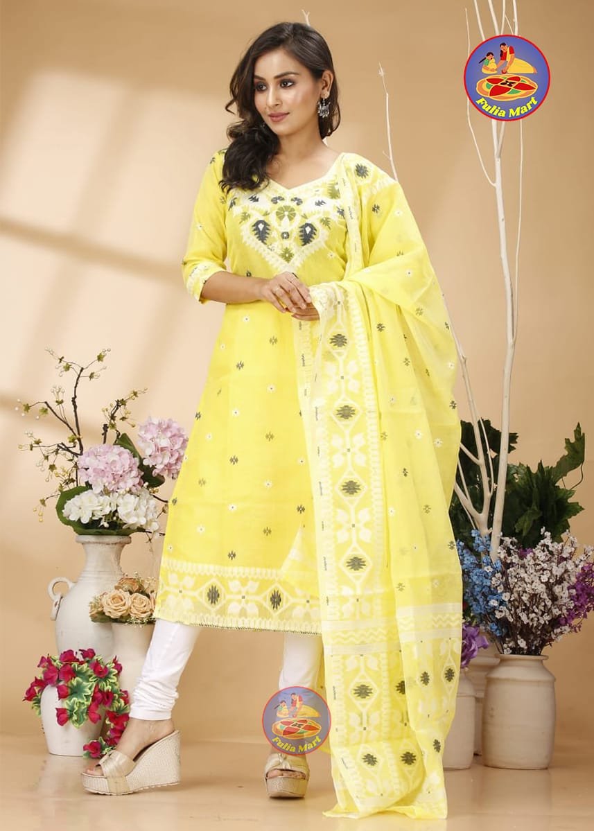 Four Leaf Sweet Corn Unstitched Jamdani Kurti Set