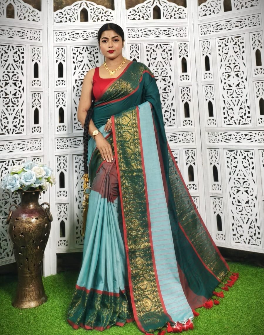- Handle with Caution: While wearing the saree, handle it with care to avoid snagging or tearing the delicate fabric. Avoid contact with rough surfaces or sharp objects that may cause damage.