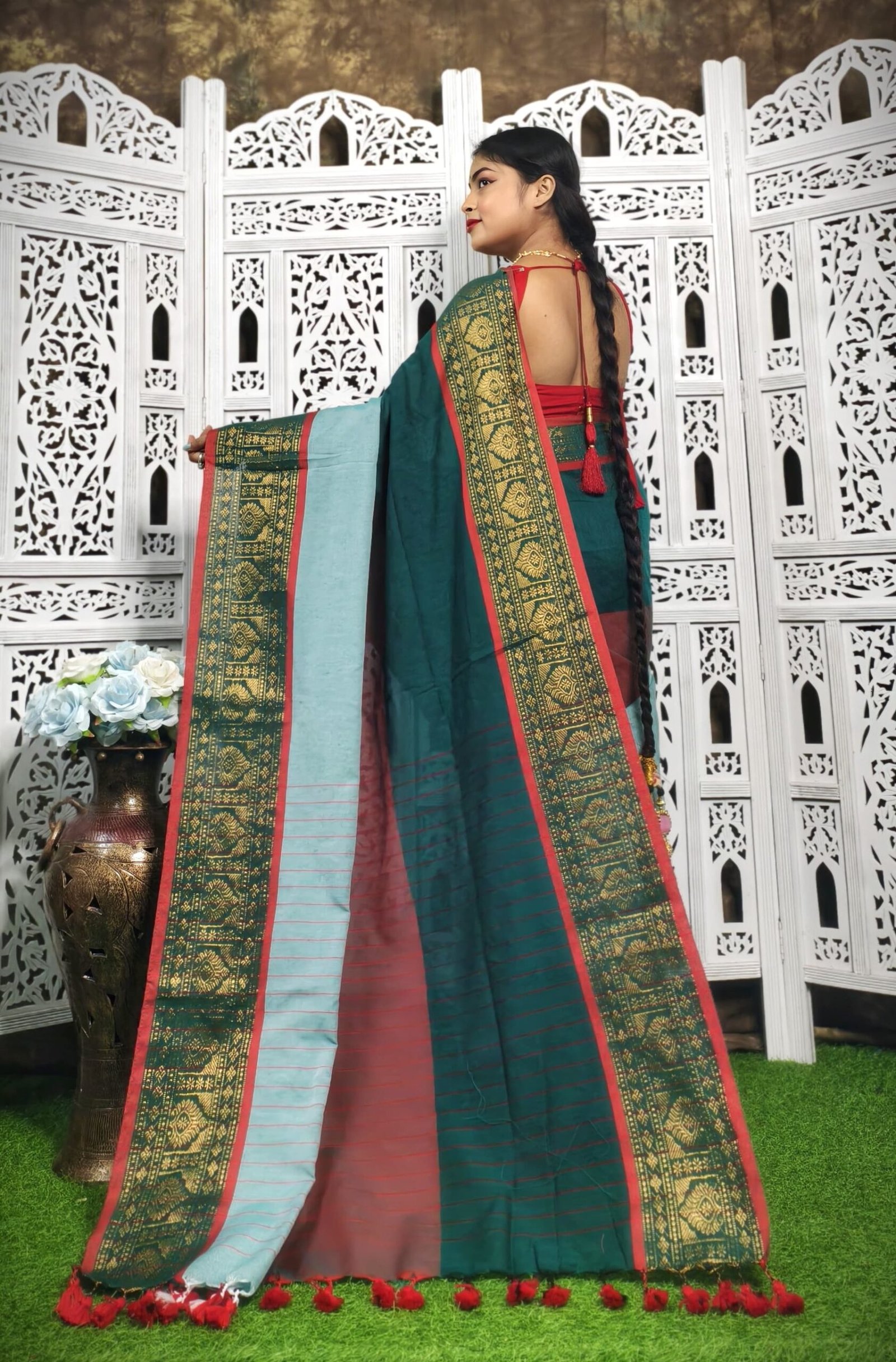 - Dry Clean Only: To maintain the integrity of the delicate fabric and intricate handloom work, it is recommended to dry clean this saree. Professional dry-cleaning will help preserve the colors and textures over time.