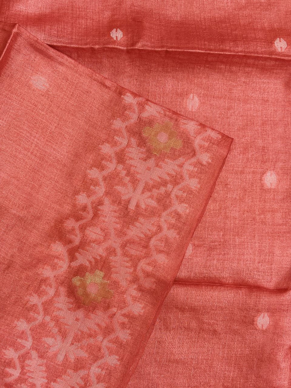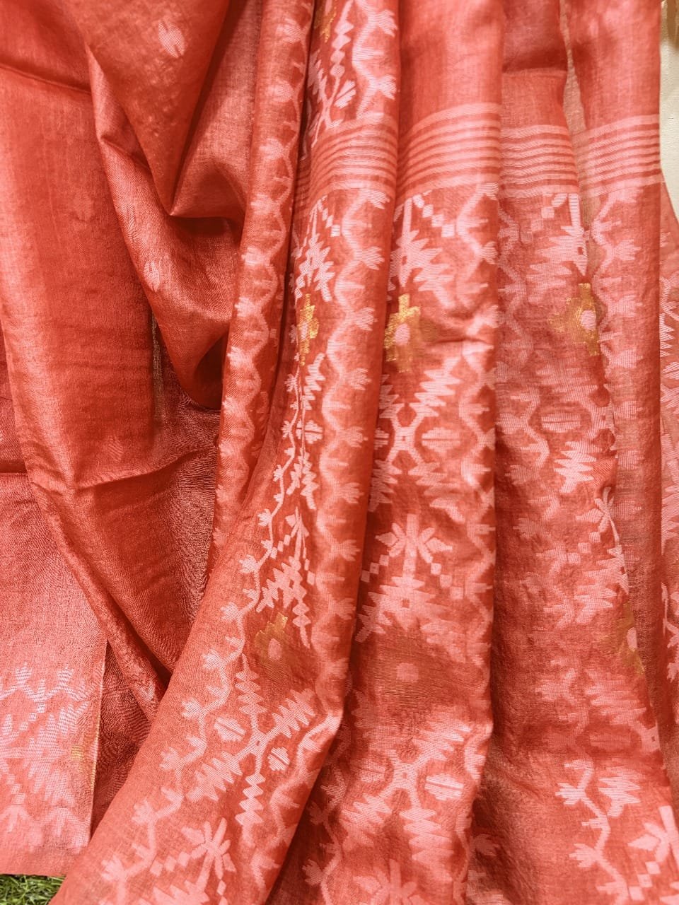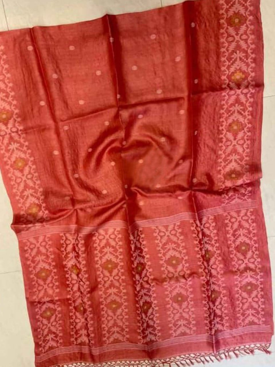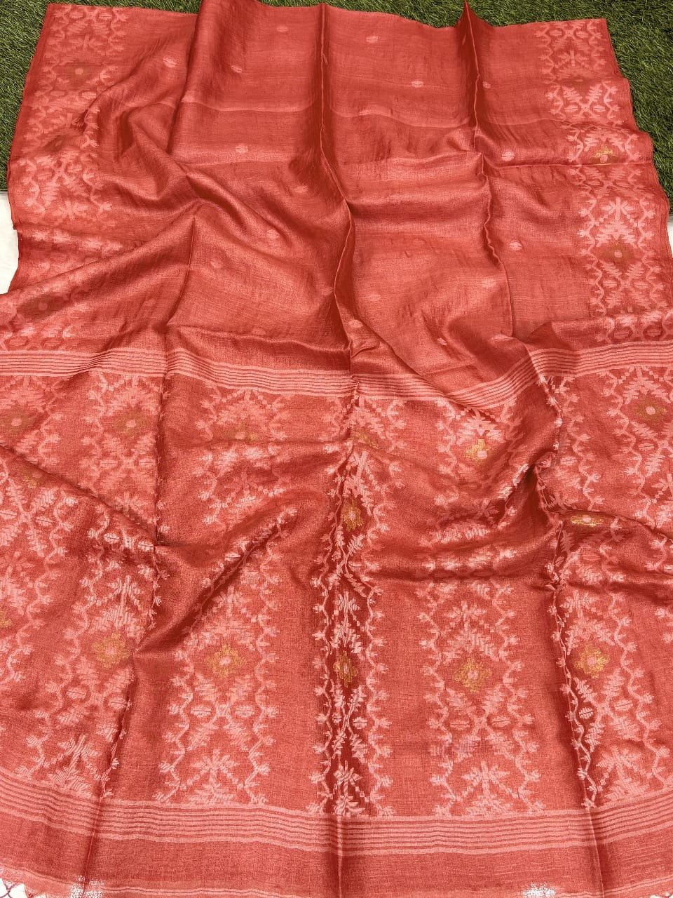 1 review for Pale Red Pure Gachi Tussar Handloom Jamdani Saree
