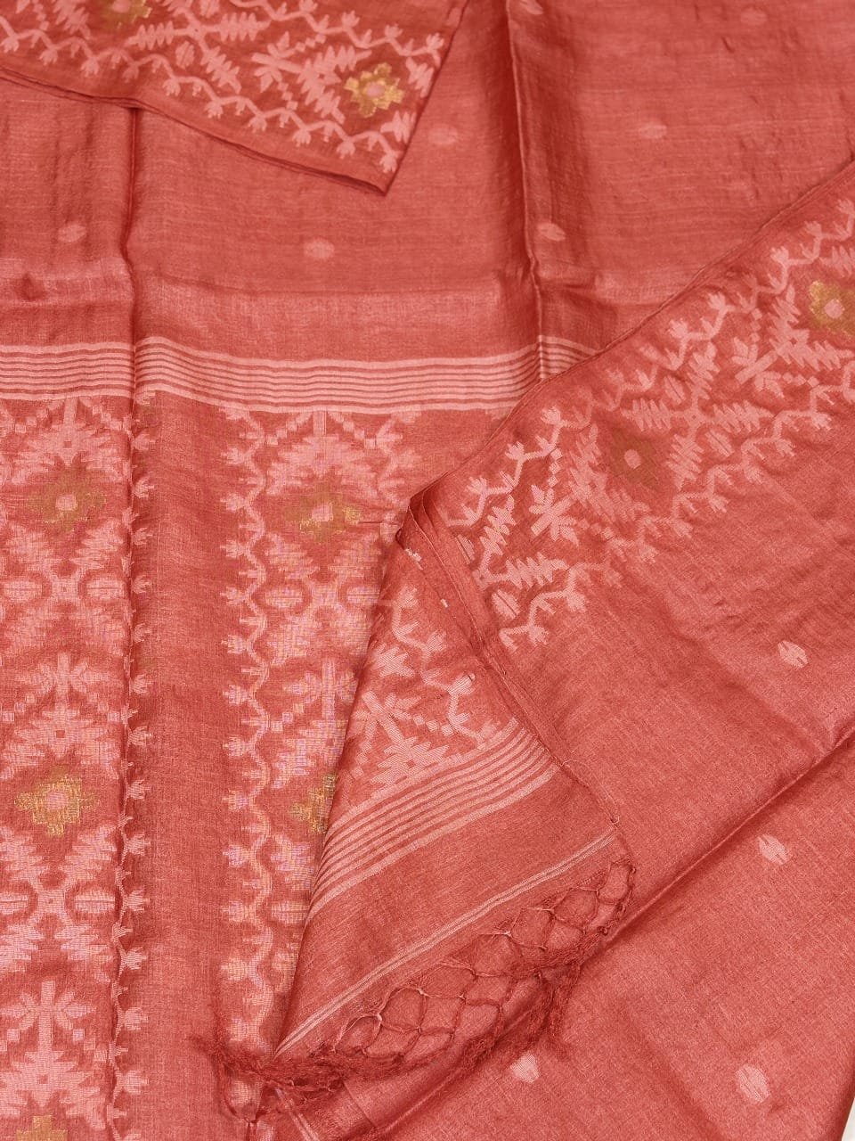 Soft Copper Joriwork Jamdani Sari