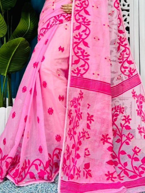 Salmon Pink Soft Bonolota Jamdani Sari Wiht Blouse Piece