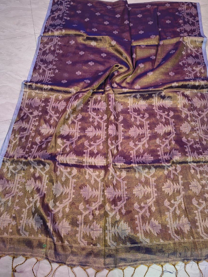 Exclusive Dual Tone Buti Tissue Sari With Blouse Piece