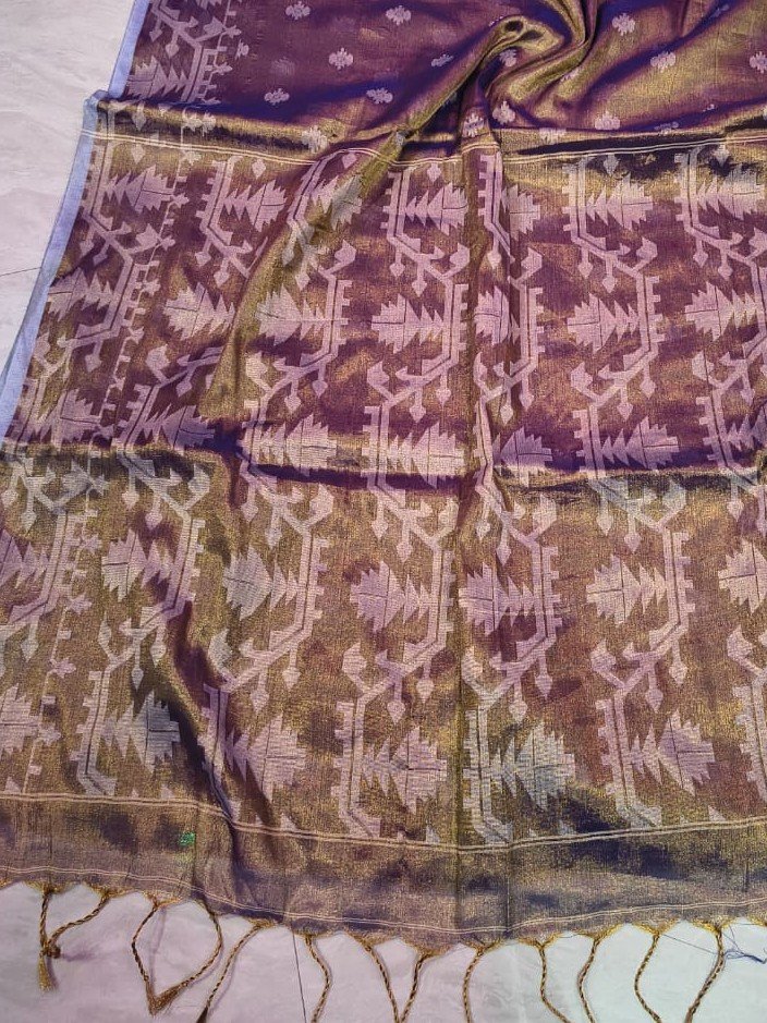 Exclusive Dual Tone Buti Tissue Sari With Blouse Piece Exclusive Dual Tone Buti Tissue Sari With Blouse Piece