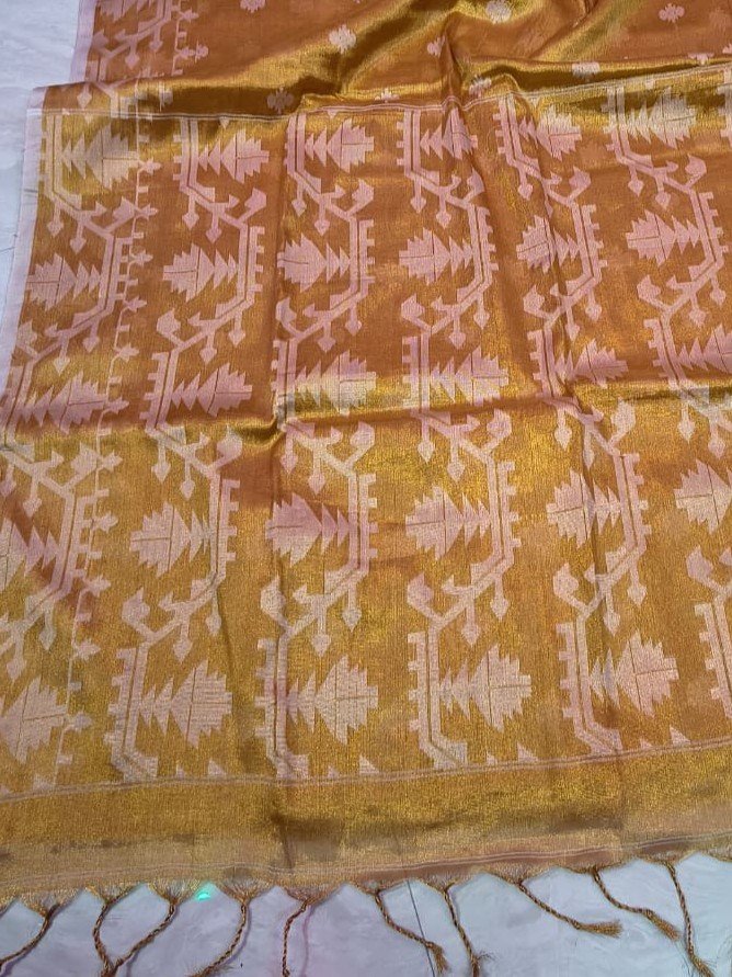 Exclusive Dual Tone Buti Tissue Sari With Blouse Piece