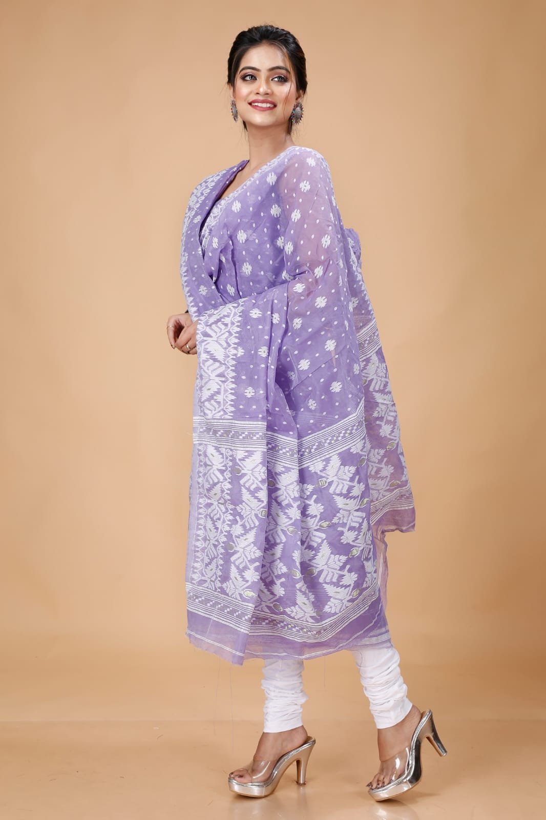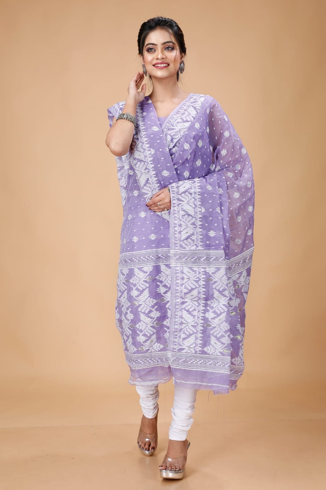 Ikkat Light Purple Muga Cotton Unstitched Jamdani Suit Set