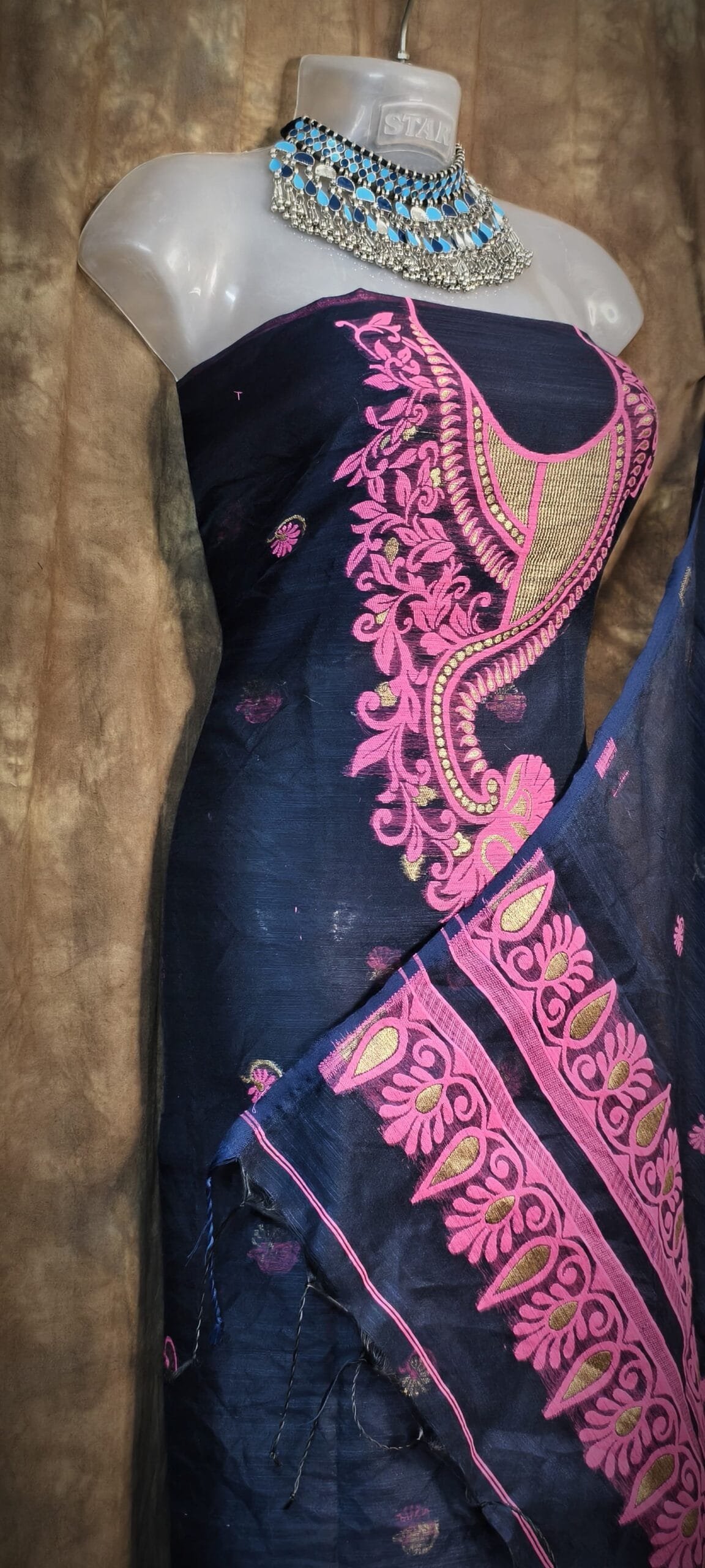 Kalka Black Muga Cotton Unstitched Jamdani Suit Set