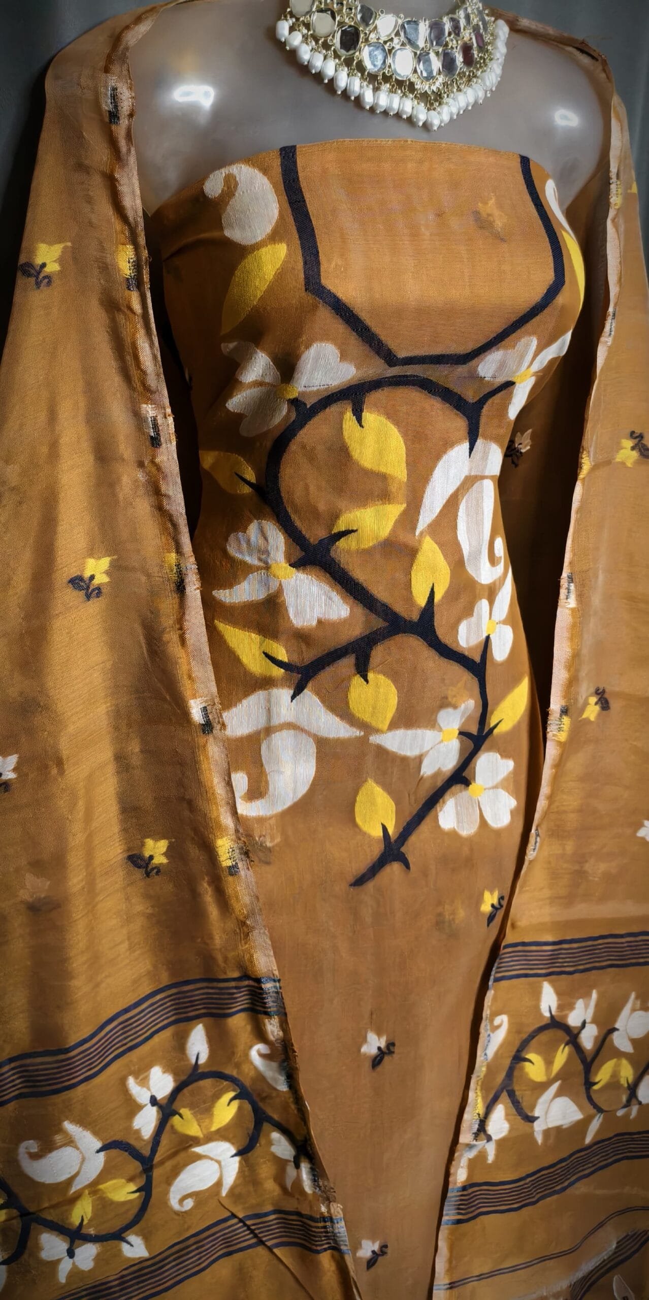 Butterfly Ash Muga Cotton Unstitched Jamdani Kurti Set