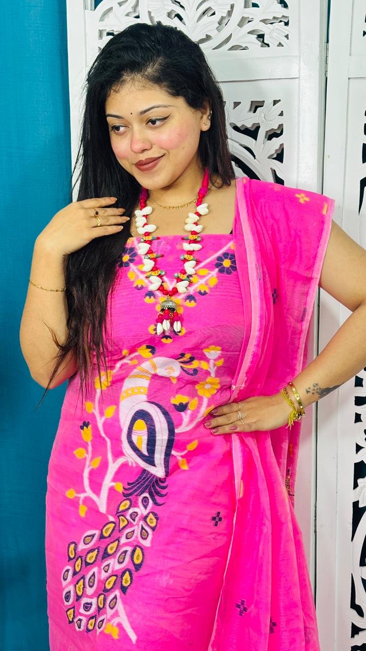 Unstitched Soft 2 Piece Jamdani Churidar – Pink Rose