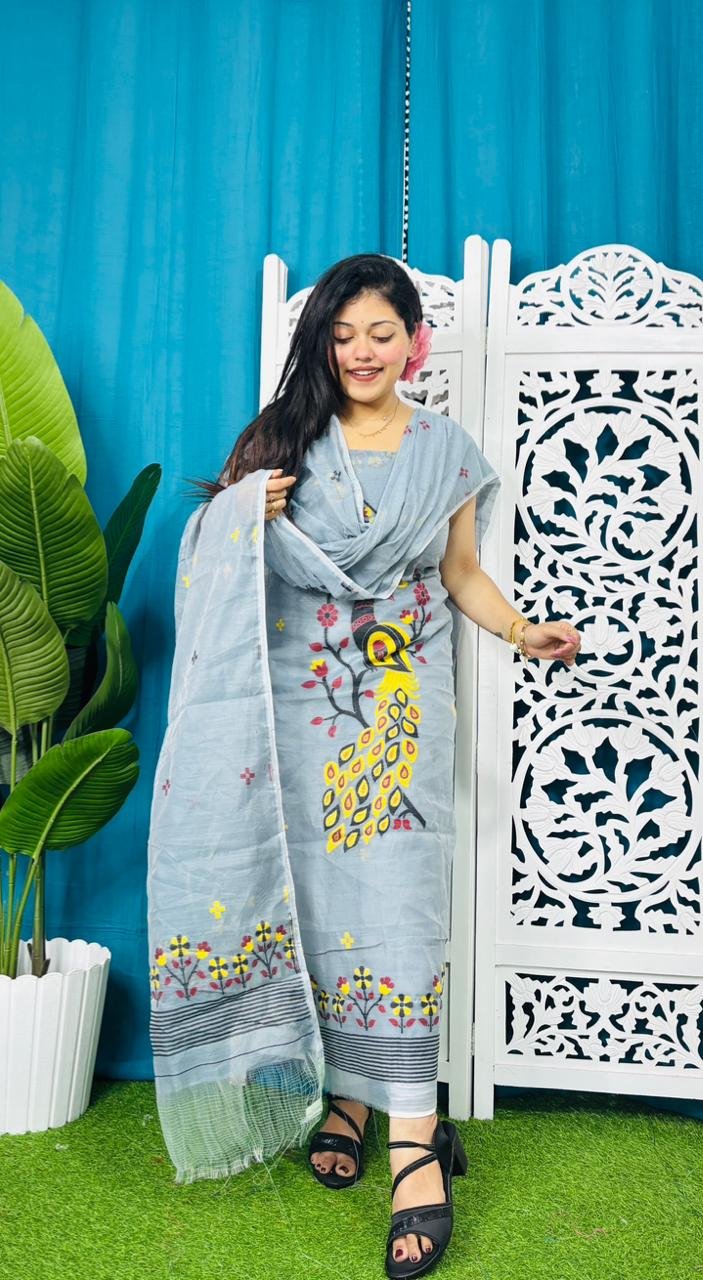 Unstitched Soft 2 Piece Jamdani Churidar - Gull Grey