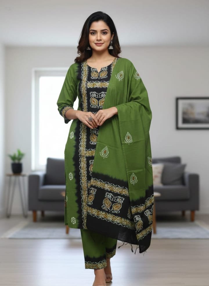 Camo Green Soft Mom Batik Unstitched 3 Piece Suit Set Camo Green Soft Mom Batik Unstitched 3 Piece Suit Set