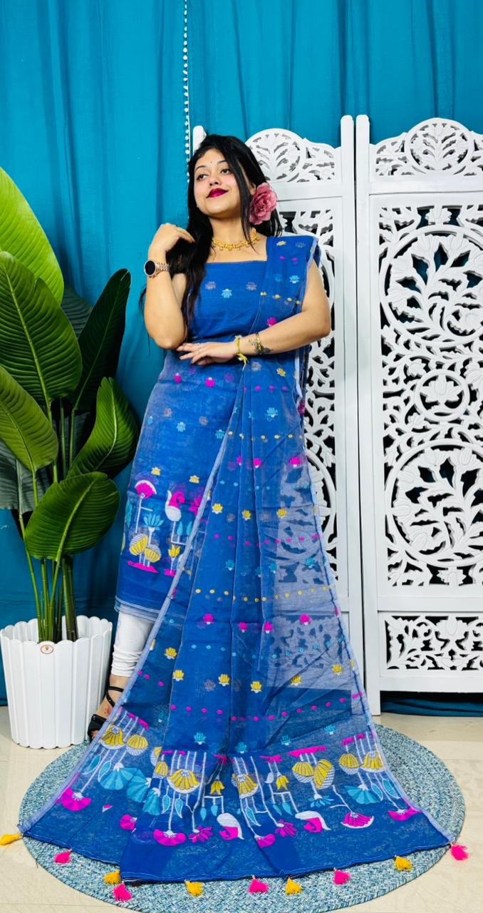 Unstitched Soft 2 Piece Jamdani Churidar - Royal Blue